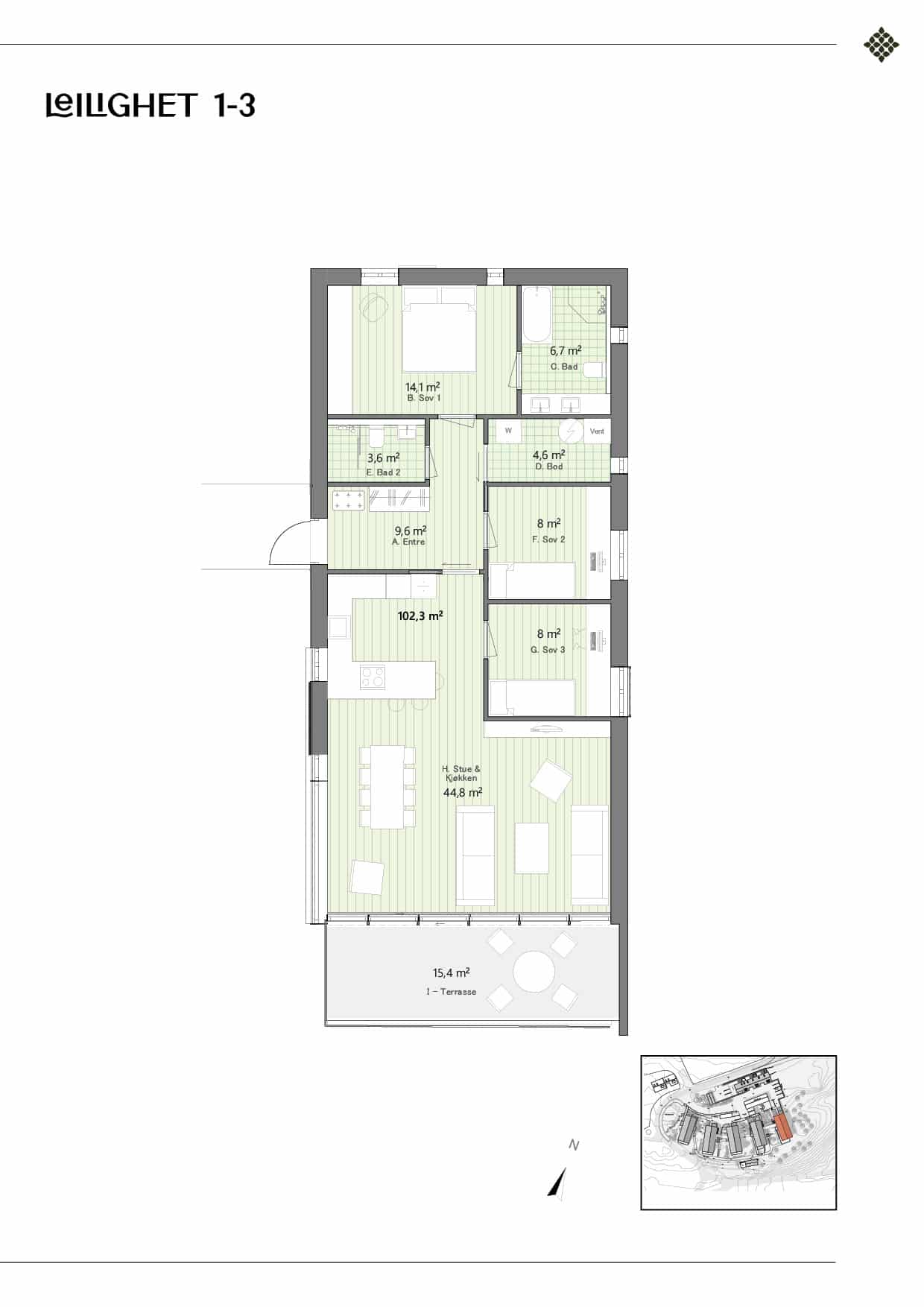 Leilighet 1-3